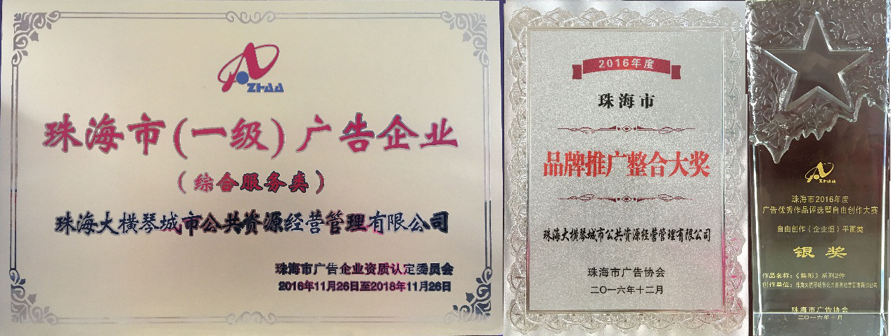 我司除了獲頒(一級)廣告企業資質外,還榮獲珠海市廣告協會頒發的“2016年度珠海市品牌推廣整合大獎”以及“2016年珠海市廣告優秀作品評選暨自由創作大賽(企業組)銀獎”兩大獎項。