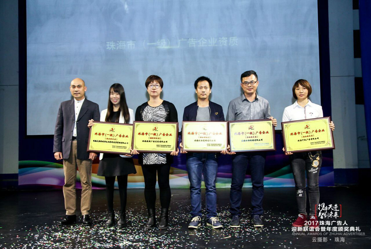 2017年1月6日,我司獲邀參加了“2017珠海廣告人迎新聯誼會暨年度頒獎典禮”,典禮上,珠海市橫琴新區工商行政管理局市場規范管理科林木華科長為我司頒發了“珠海市一級廣告企業資質”牌匾。