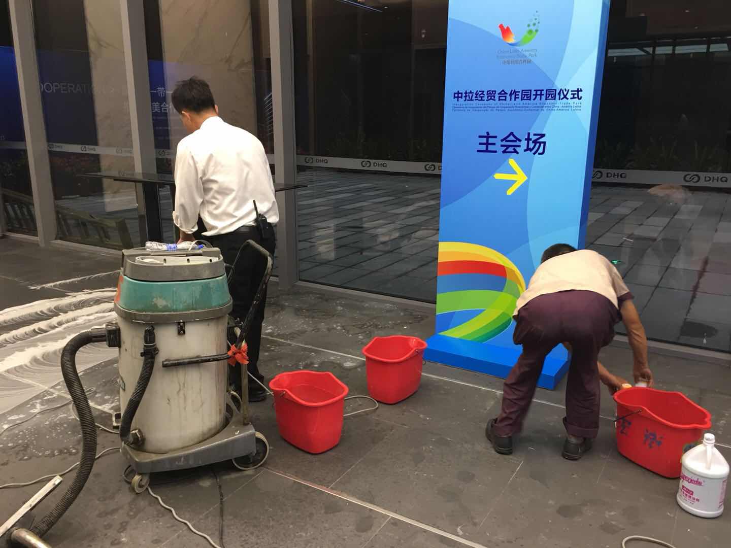 從高難度的高空清洗、細致專業(yè)的石材養(yǎng)護,到人性化的會場服務、安全有序的安保秩序,每一面墻,每一塊玻璃,每一塊地板,每一個角落,都留下了城資公司優(yōu)質(zhì)和專業(yè)的服務痕跡。