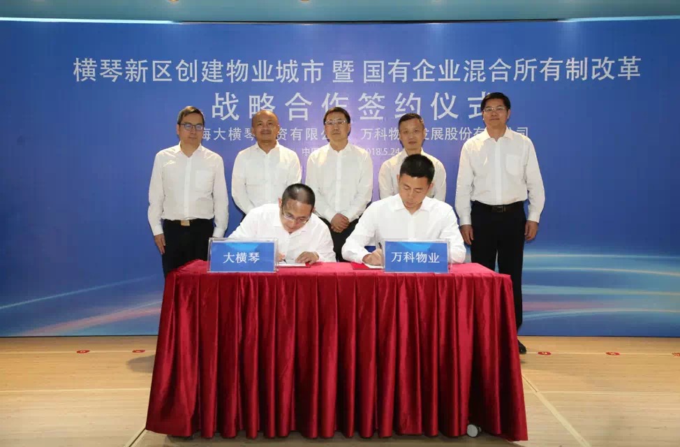 5月24日,珠海大橫琴投資有限公司與萬科物業發展股份有限公司正式簽署戰略合作框架協議,雙方將攜手推動“物業城市”管理理念的落地,同時將以珠海大橫琴城市公共資源經營管理有限公司(簡稱大橫琴城資)為合作載體進行混合所有制改革(簡稱混改),這標志著橫琴新區深化國有企業改革、創建全國“物業城市”試點工作正式啟動。