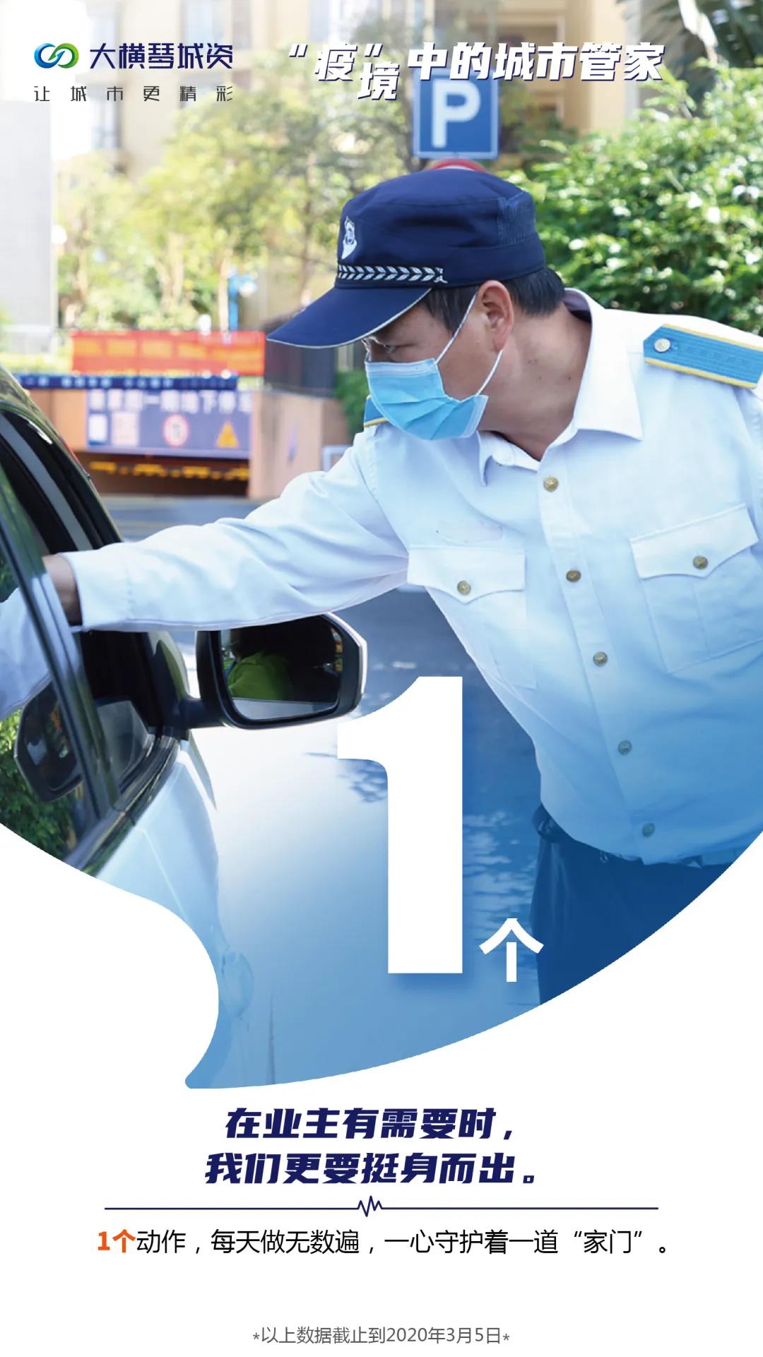 為支援前線工作,滿足疫情防控需要,在橫琴新區管委會的召喚下,大橫琴城資以多種形式選派優秀員工支援新區,如選送2名志愿者加入橫琴新區防疫工作組;選送5名退伍軍人加入橫琴新區民兵隊,協防橫琴新區管委會所在地橫琴鎮紅旗村;選送10名黨員參加橫琴新區防控新型冠狀病毒感染行動等。