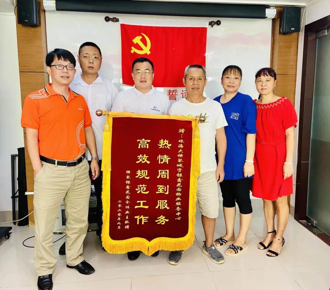 2020年9月,銀鑫花園全體業(yè)主贈送銀鑫花園物業(yè)服務團隊一面印有“熱情周到服務,高效規(guī)范工作”的錦旗,對物業(yè)工作表示肯定與支持。