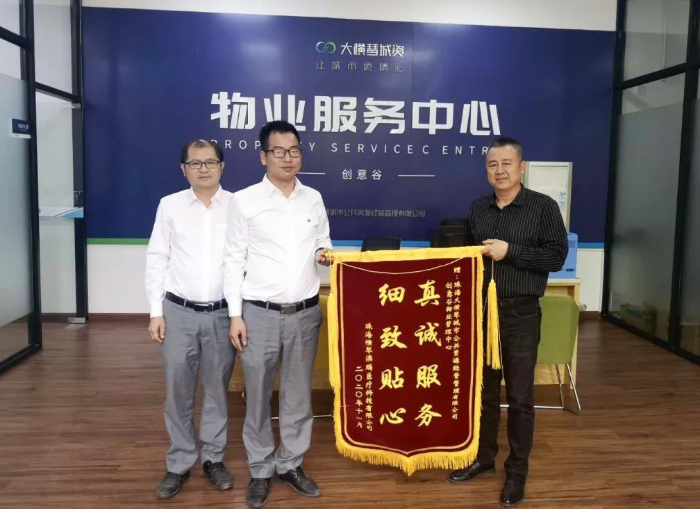 2020年11月,珠海橫琴澳瑞醫(yī)療科技有限公司為橫琴?澳門青年創(chuàng)意谷項目頒發(fā)印有“真誠服務,細致貼心”的錦旗,對物業(yè)人員細致、熱心的服務表示感謝。