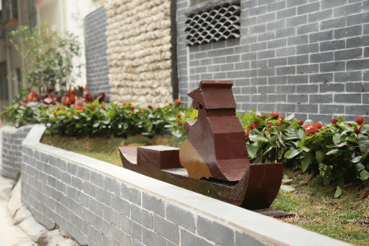 經改造的下村科幻藝術感十足,更有“科技藝術小鎮”之稱,其通過打造時光隧道、時光藝術廣場、街心小憩等景觀,形成可供居民休閑的一體化空間,與此同時村居街道上繪有客家文化元素的光陰墻,在延續了下村文化底蘊的同時,亦呼應了時光主題。
