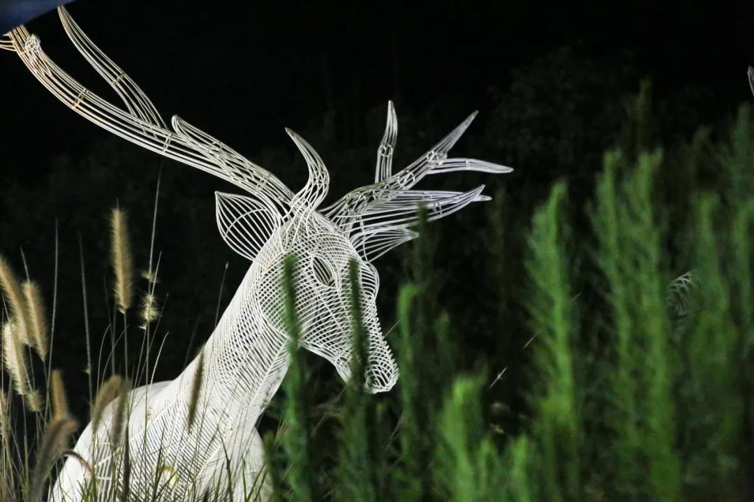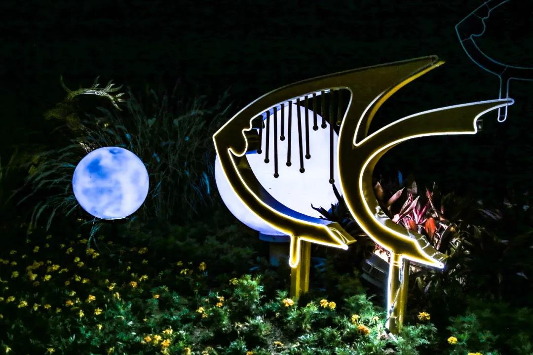 波浪形的燈柱夜晚變換出七彩光芒