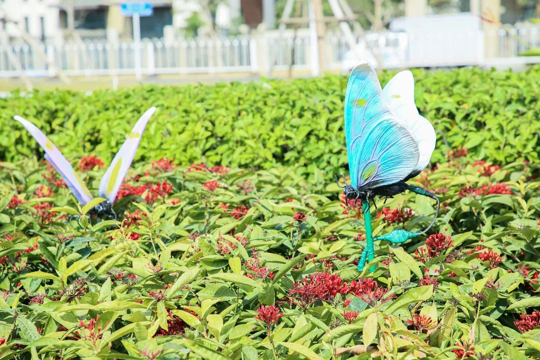 并加入蝴蝶、丹頂鶴等動物造型雕塑