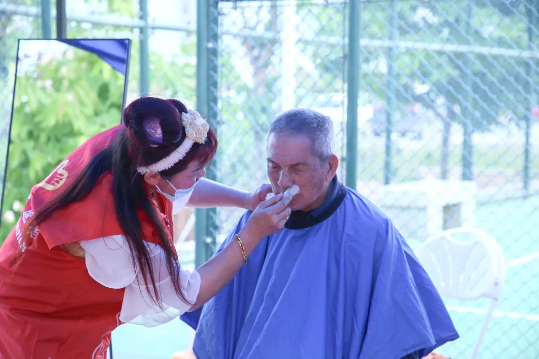 活動現場,大橫琴城資社區服務事業部青年文明號爭創集體的團員青年們引導居民前往各服務攤位,義工們則耐心地開展各項服務工作:為因行動不便無法出遠門的阿伯剪發;為家里菜刀鈍、切菜慢的阿姨解決磨刀難題;為定期需要外出看診的居民測血壓、把脈......活動共計剪發近30人次,磨刀80余把,接待咨詢就診200余人次。
