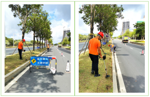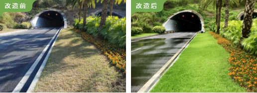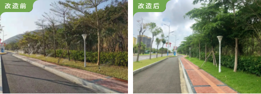 ▲環島西路與橫琴大道轉彎位安裝噴淋系統前后的對比圖