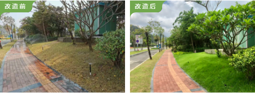▲長隆大道深井段人行道安裝噴淋系統前后的對比圖