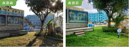 ▲長隆大道深井村口小景點安裝噴淋系統前后的對比圖