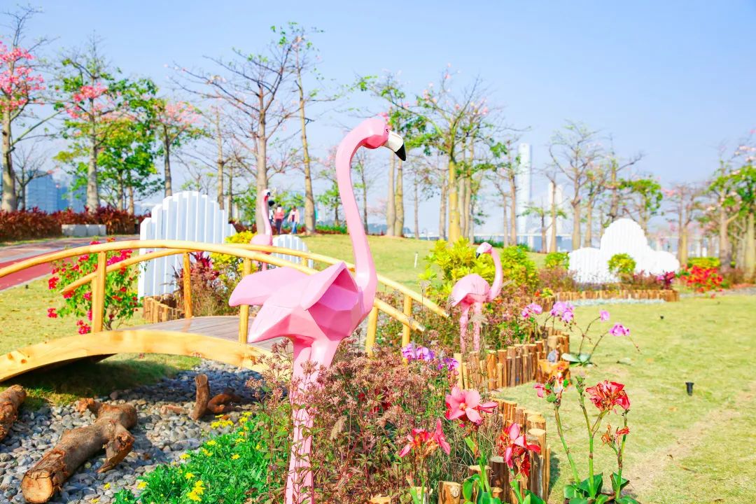增設18處景觀,種植了200多個開花苗木品種,每隔500米設置一道特色景觀,同時增加了許多擺件、游玩設施(如秋千、彈簧木馬)等。