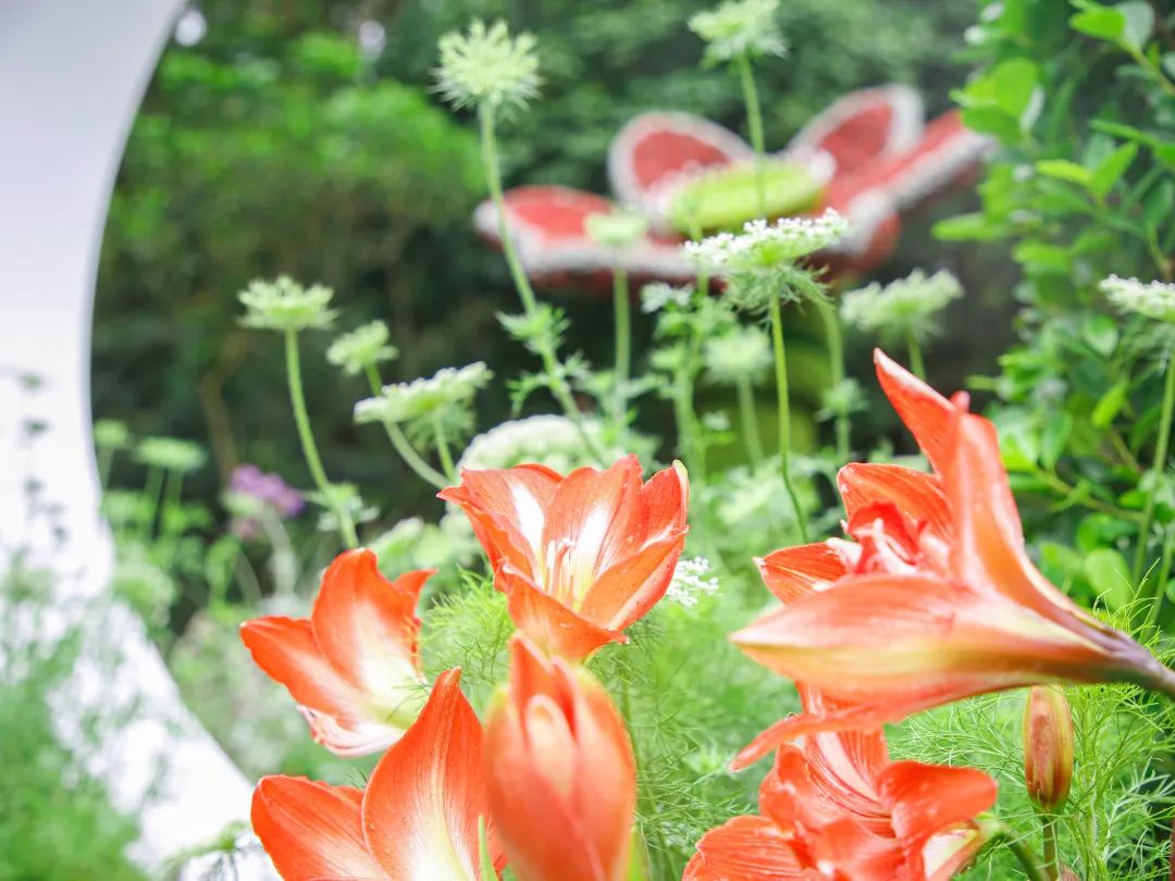 在植被設計選種方面,橫琴展園以朱頂紅為主要花種。朱頂紅花語為“渴望被愛,追求愛,成雙成對”,也代表著“在任何境遇中,都要堅持正確的道路”。以朱頂紅為主題花卉寓意粵澳相愛互融,隨著兩地居民生活、文化、制度不斷深入融合,橫琴粵澳深度合作區的建設更加深入、堅實。