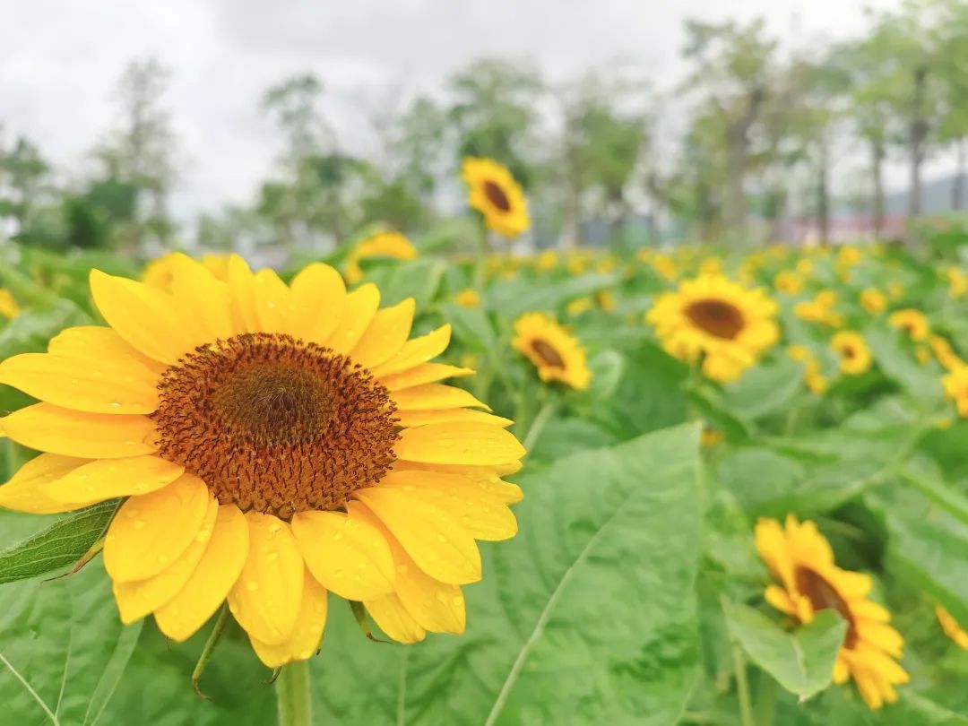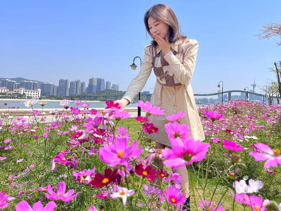 盛放的花朵搭配著藍天、白云,美不勝收,行走在花間的小徑上,你就是那畫中人。