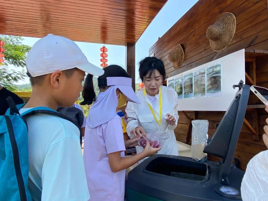 首先,小朋友們在史聰老師的帶領(lǐng)下參觀了農(nóng)場。隨后,在廚余垃圾變沃土小課堂上,張熹涵老師為小朋友們分享了垃圾分類、土壤的類型、廚余垃圾的作用、如何使用廚余垃圾制作有機(jī)土壤、黑水虻處理系統(tǒng)等內(nèi)容,小朋友們聽得津津有味。老師也通過展示成功培育的沃土,讓小朋友們近距離觀察真實(shí)土壤發(fā)酵及黑水虻生長的過程。