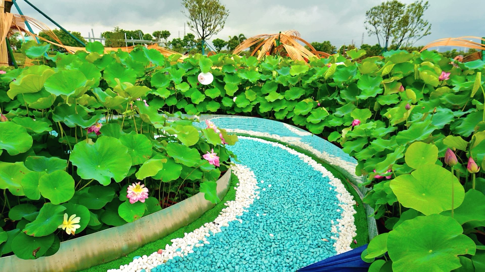 踏入“荷夢瀲滟”展園,仿佛置身于碧波蕩漾、荷花盛放的荷塘中。