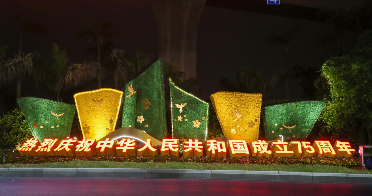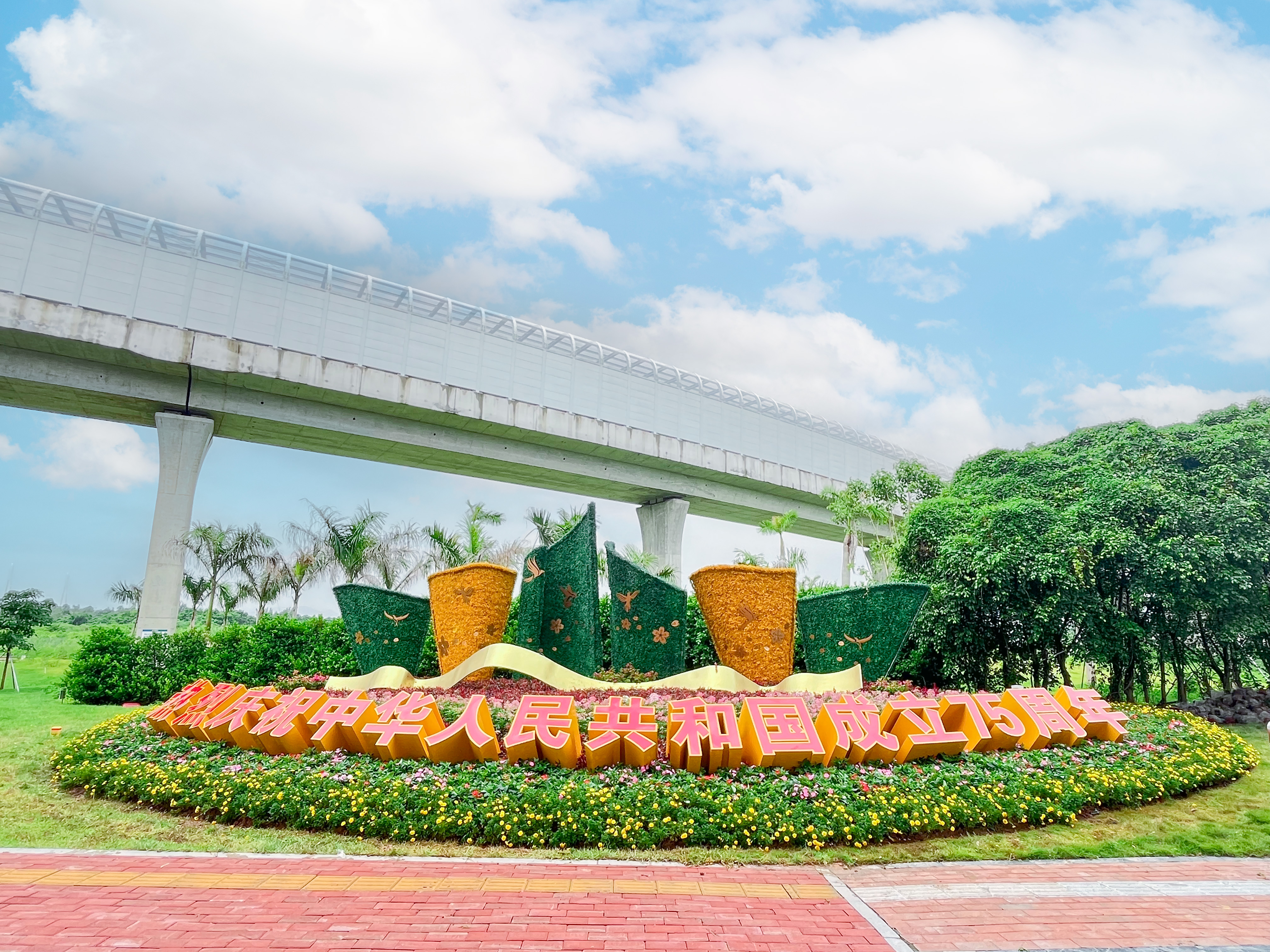 在橫琴二橋市政綠地設(shè)置了以“熱烈慶祝中華人民共和國成立75周年”為主題,以合作區(qū)生態(tài)自然風(fēng)貌為背景的造景,該造景將紅、黃色調(diào)的植物鋪設(shè)成特色花鏡,合作區(qū)特色鳥類和鮮花裝飾點綴其間,不僅傳遞了人與自然和諧共生的理念,展示合作區(qū)的生物多樣性,也表達了對祖國生日的熱烈慶祝和對合作區(qū)未來發(fā)展的美好祝愿。